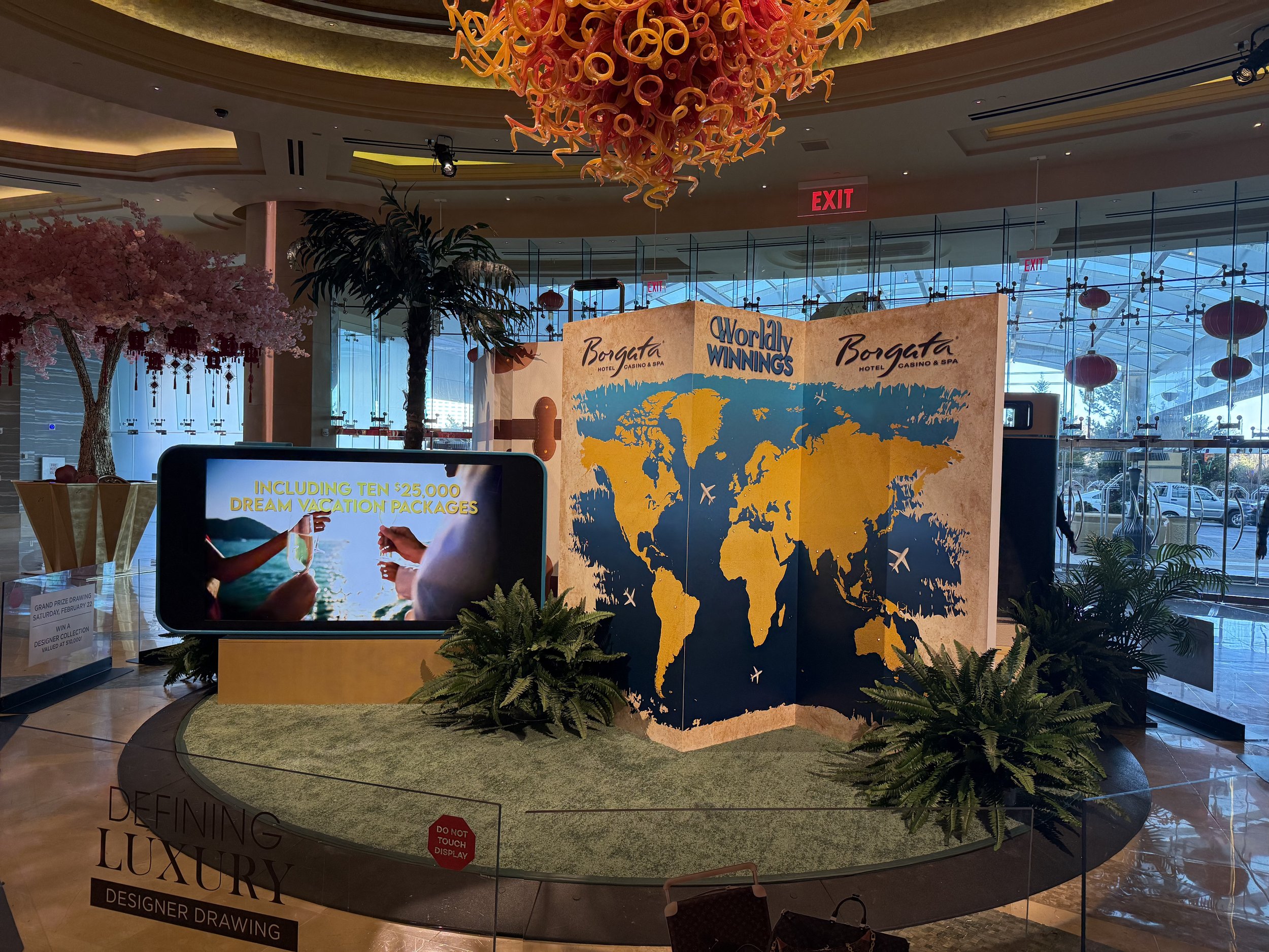 We designed, fabricated, and installed an oversized display of travel-sized kit. We utilized the graphics and colors of the promotion to determine color scheme and vibe. We collaborated with the Borgata team, using their digital promotional videos to integrate into the display.